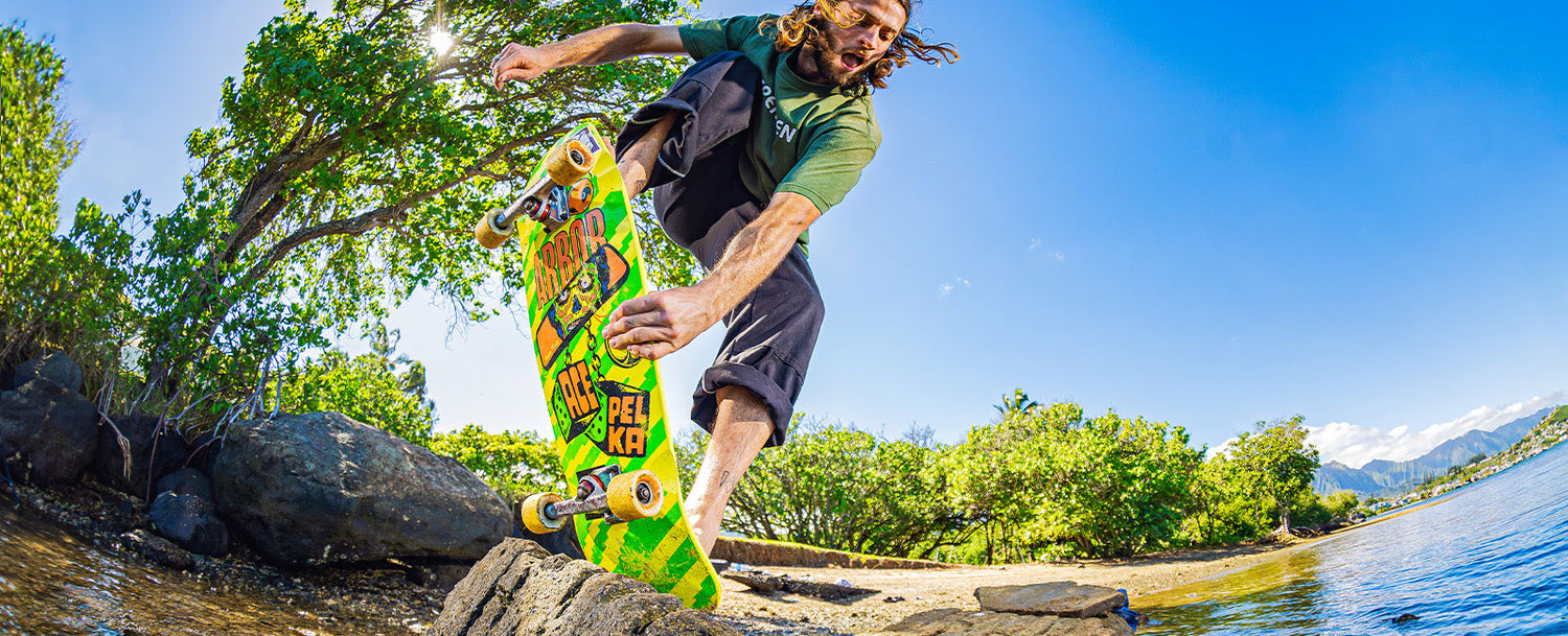 Watch Ace skate his "Rearview" deck in Hawaii and rip the legendary Wallows ditch as a homage to the Bones Brigade and soak up all the island vibes Oahu has to offer.