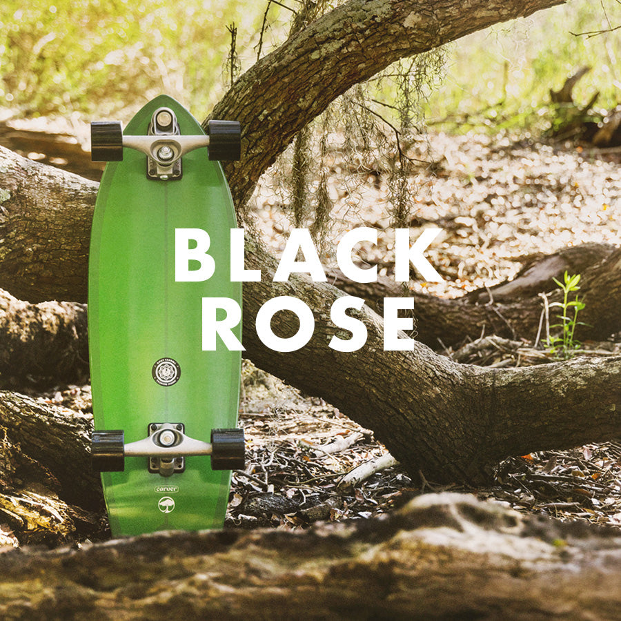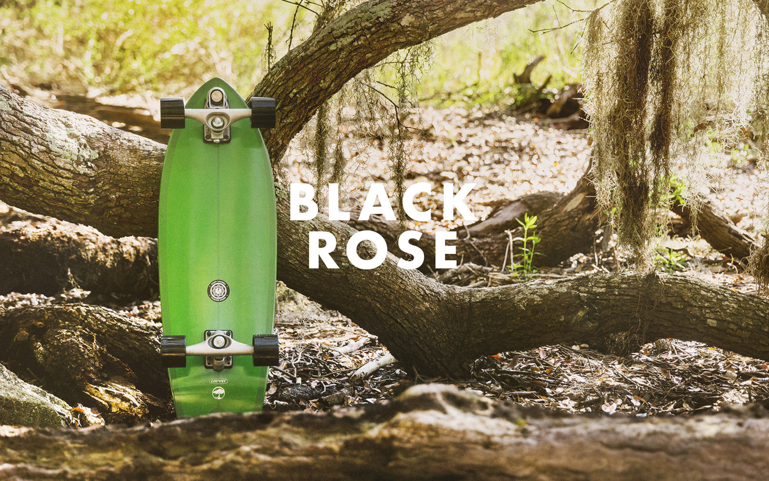 “The surfskate is based off our Black Rose MFG. fish, the Sheepshead, although the design of the deck came out looking more like a mix between the Thin Liszy (our performance fish model) and the Sheepshead (our traditional keel style twin.) Once you get used to how loose the trucks are, it is a very easy board to ride; I approached it the same way I would surf one of our fishes and it translated very well to riding street. The Carver C7 trucks allow you to pump the board to create speed so don’t have to push as much as other cruisers. The board is fun to carve and slide on just like you would a twin fin fish. Regarding the colors, we kept true to the Black Rose MFG. look and aesthetic; we really wanted the board to give the rider the look and feel of riding a surfboard while skating.”